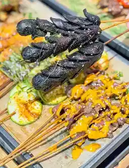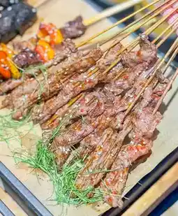 Who knew this place's juicy, fresh-cut beef skewers would definitely be on my food list! Freshly cut ingredients are available in the open counter. I recommend going early to avoid a line...