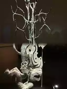 5. Bronze Altar: The Bronze Altar unearthed from the No. 2 sacrificial pit has been restored through research. Its structure, from top to bottom, consists of a shrine and mountain peaks, a shaman, and a pair of mythical birds, symbolizing the three realms of heaven, earth, and humanity, showcasing the ancient Shu people's mythological worldview.