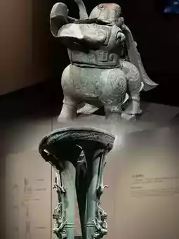 1. Bronze Standing Figure: A bronze figure standing 1.8 meters tall on a 0.8-meter-high pedestal. This is one of the most representative artifacts of the Sanxingdui Kingdom and a rare large bronze figure from ancient civilizations.