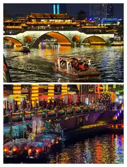- Evening: Find a traditional Chengdu hotpot restaurant to try various small dishes, paired with a bowl of Kong Gan rice, evoking childhood flavors. After dinner, visit the area around Wangping Street, Dongmen Bridge, Tianxianqiao South Road, and Jiuyan Bridge. You can choose to take a boat or walk to enjoy the romantic night view of the Jin River and experience Chengdu’s nightlife.