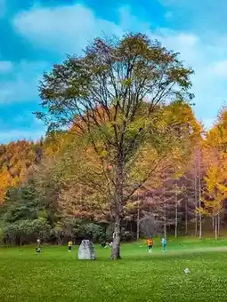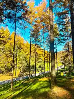 Then follow the route of "Yuanyangchi—Shenlong Pavilion—Linjia Bazi". The golden larch trees on both sides make you feel like you are in a fairy tale world. 🏞 Linjia Bazi also has a large green lawn, which is suitable for camping and picnics, but remember not to use fire! 🔥