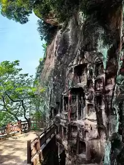 The Thousand Buddha Cliff is not only a treasure house of art, but also carries a profound history and culture. The ancient plank road, the dangerous pavilion, and the Stone Cabinet Pavilion are located at the southern end of the cliff, facing the Huangze Temple across the river, witnessing the prosperity and vicissitudes of the Jinniu Road. Although the construction of the Sichuan-Shaanxi Highway in 1935 damaged some of the statues, it also brought a wonderful collision between the Thousand Buddha Cliff and modern civilization. The traffic flows on the road under the cliff, and the Buddha statues on the cliff stare at the millennium, with the ancient and modern in the same frame, which is full of emotion.