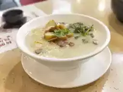 This is a staple food, the ingredients are barbecued pork, fish slices, squid tentacles, floating skin, jellyfish, egg shreds, fried peanuts, crispy, chopped green onions, radish, ginger shreds, and white porridge.