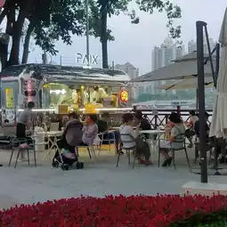 You can stop off and grab a coffee at the PAIX coffee truck on the island and get a stunning view of the Canton Tower.