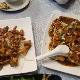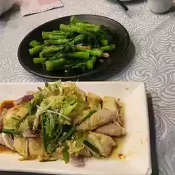 8 dishes -- Dry fried beef rice, soy sauce royal goose intestine ***, raw fried cabbage ***, steamed fish cloud ***, stuffed tofu, scallion chicken ***, coriander mixed with pork offal, pepper and salt steak. Stars is a must-eat recommendation