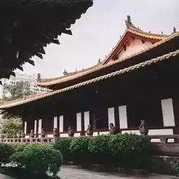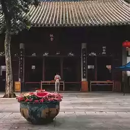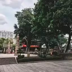 Guangxiao Temple, one of the famous ancient buildings in Guangdong, is magnificent in scale and the best among the temples in Lingnan. The temple is very majestic, and the structure of the temple is majestic and magnificent with distinctive features in the style of Tang and Song dynasties. On the right side of the main hall is the Galan Hall, where the guardian deity is enshrined, and on the left side is the Sixth Patriarch Hall, which was built in the Northern Song Dynasty. The Main Hall, the most important building in Guangxiao Temple, is built on a high platform, with the bell and drum towers built on the left and right of the hall. Inside the hall are three newly built large Buddha statues, with Sakyamuni in the middle, Manjushri and Samantabhadra Bodhisattva on the left and right respectively. The three Buddha statues are collectively known as the "Three Holy Ones of Avatamsaka Sutra."