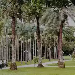 The park features beautiful green spaces, walking paths, and a large lake, creating a serene environment for leisurely strolls and picnics. It's also a hub for various cultural and recreational activities, with areas for dancing, tai chi, and exercise equipment for the public.