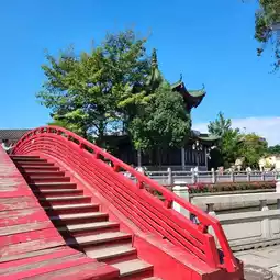From the back door of the Cantonese Opera Museum, you can see the arch bridge across the river.
