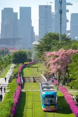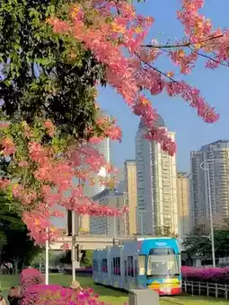The route of the tram reflects the prosperity of the city center of Guangzhou. When the tram encounters the pink kapok, it is really beautiful. Promise me that I will definitely come here to ride once when I come to Guangzhou.