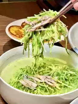 Duck blood, crispy meat, tripe, luncheon meat