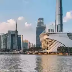 - Get off the Guangzhou Tower and next to it, there will be a small train to ride and see the view of the Pearl River. Chinese people reviewed it as 在广州坐小火车 😂! The view is as shown in pictures 4-6.