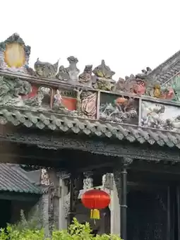 The Chen Clan Academy covers an area of 15,000 square meters and consists of 19 buildings with three entrances, five rooms, nine halls and six courtyards. It is a typical southern ancestral hall building, a culmination of Lingnan folk architectural decorative art. It is exquisitely crafted and famous for its "three carvings", "three sculptures" and "one cast iron". The colorful flower ridges are the most eye-catching part of the Chen Clan Academy.
