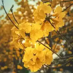 The golden flowers sway in the spring breeze like a string of wind chimes