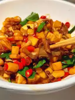🐟 The spicy fish head with chopped peppers is thrillingly spicy, with a whole big fish head and tempting chopped peppers making the fish meat tender and excitingly spicy.