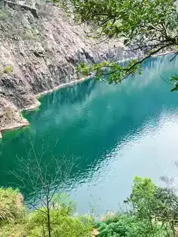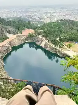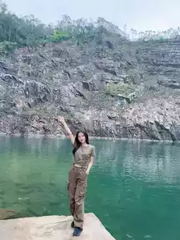 🔺At the bottom of the mountain by the pond (Picture two), the water is very green! The color is super beautiful, with the tall mines in the background forming a strong contrast, any casual shot looks good.