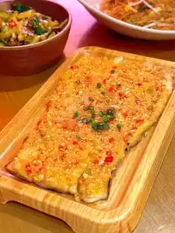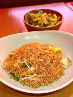 In addition to the crayfish, the rice noodles were fried well 👍, dry and cooked to perfection. The roasted eggplant is fragrant, the eggplant flesh is soft and stringy, and the garlic flavor is rich. Have another sip of lemon tea to cool down and relieve the spiciness!