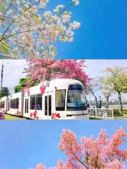 💡Life advice!! In December, you must come to Guangzhou and experience the romance of autumn and winter, where the entire city is dyed pink! Known as the most beautiful seven kilometer tram line in Guangzhou, the different kapok and triangular plum trees along the way have already been opened, as if entering the comic world of Hayao Miyazaki. It's really beautiful.