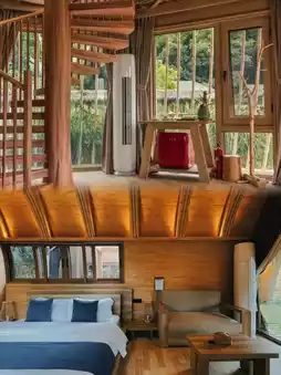 The resort is cleverly integrated into the mountains, showcasing unique Southeast Asian architectural styles, making you feel like you've entered a paradise away from the world, enjoying tranquility.