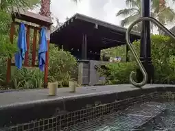To enjoy the hot springs, first register at the hot spring center with your room card. The 23 hot spring pools are scattered along the paths, which are winding and secluded. With the cover of trees, bamboo fences, and courtyard walls, it feels like being in a maze. As each hot spring pool appears, it gives a sense of treasure hunting, making it hard to leave.