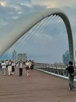 If you want to enjoy a breathtaking view of Guangzhou, you definitely have to go to Guangzhou pedestrian Bridge. Its magnificent shape is an engineer's achievement. From the bridge you can appreciate a beautiful view of the whole Pearl river area, including Canton Tower, Haixinsha island and Zhujiang New Town with its skyscrapers. I recommend going during sunset and staying till the city lights turn on.#guangzhou