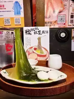Nuojijiji Matcha Que Bing 🥢, one plate each with a friend, to see who can stretch it longer haha, with black sugar syrup and soybean powder, it is smooth and soft, full of happiness.