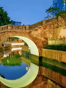 Small bridges and flowing water, antique architecture, fake hills, gardens and so on