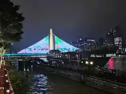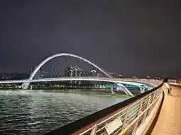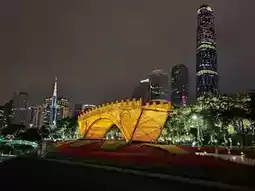 Starting from the Guangzhou Tower metro station exit, walk towards the Pearl River to see the iconic 'Guangzhou Tower,' also known as the 'Slim Waist' due to its slender and graceful shape. It's highly recommended to visit at night. Despite the crowds, the Pearl River's night scenery is mesmerizing. This spot has become a prime location for tourists to take photos, with people gathering on both sides of the river to capture the spectacular views of the Guangzhou Tower, showcasing various creative poses. You can also purchase tickets in advance to go up to the top of the tower, where you can enjoy city views and ride the horizontal Ferris wheel, though the price is a bit steep. Continue walking towards the Haixin Bridge, which is just a few minutes away. Once on the bridge, you can take in the panoramic views of both sides of the Pearl River and head to the bar area in Pazhou for a drink, where the atmosphere is quite lively.