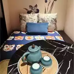 I like the tea area 🍵 in the room the most. It's decorated in a lion dance style, which is very modern Chinese.