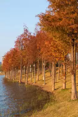 this bald cypress has already put on its autumn clothes and is in its best viewing period. It is in Jiulong Lake Park in Sino-Singapore Knowledge City.