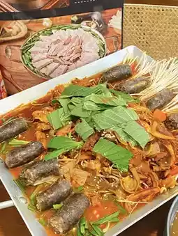 I ordered this on the wall and didn't expect it to be so delicious. Fried rice sausage, meat, and side dishes can be heated on the iron plate. The rice sausage soaked in soup has a rich and chewy taste and is fragrant.