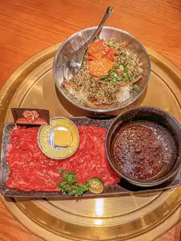 Meat lovers, great satisfaction, a super large and fresh piece of diaphragm, a novel way to eat the heart meat dipped in butter, full of rich butter flavor