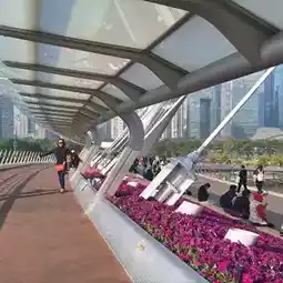 Figure 1-2. Outside Guangzhou Tower Square. Figure 3 Haixin Bridge: It takes about 10-15 minutes to walk from Guangzhou Tower Station to Haixin Bridge. The urban rail sightseeing train has stopped running at Guangzhou Tower, please pay attention. Guangzhou Tower Square opened in November, with many semi-open-air cafes and restaurants to choose from, and there are lights at night. You can take a taxi to the nearby Guangzhou Art Museum, which is free to enter.