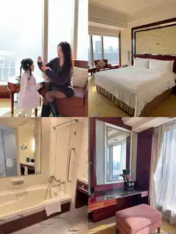 The room is also large, and the floor-to-ceiling windows offer a view of the city of Pazhou New District. The bathroom is equipped with a bathtub, and the children are very happy to take a bath and play with water.
