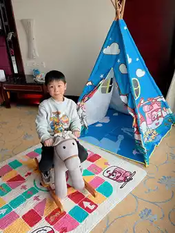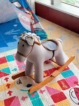 There’s also a small tent and a rocking horse in the room.