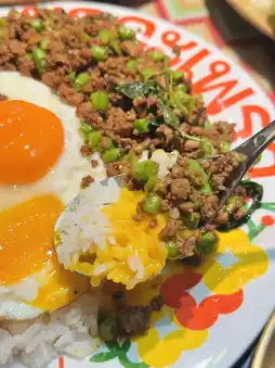 Runny egg yolk💯 minced meat stir-fried with sauce, so flavorful,