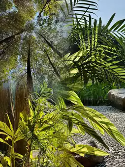 The Shade Plant Area is like a mysterious green kingdom. Various ferns, orchids, and other plants grow freely in the humid environment. Dewdrops hang on the leaves, glistening in the light. The sound of running water in the stone stream is like a natural symphony, creating a fairyland atmosphere.