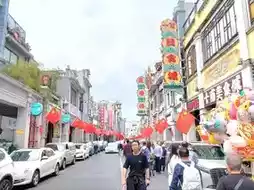 This pedestrian street consists of Shangjiu Road, Xiajiu Road, and Dishifu Road, featuring Lingnan-style arcade buildings. The upper floors are residential, while the lower floors are shops.
