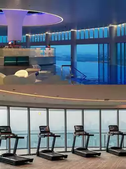 ๐ถThe infinity pool on the top floor is deep and wide, with a half-open design, similar to the Park Hyatt Shenzhen. The north-south river breeze blows through, and it will definitely become a new summer resort in Guangzhou in summer โจ. In addition, there is an outdoor platform on the fifth floor, where you can camp on the lush grass.