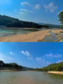 5⃣️Shuimei Village + Lanxi Village: The crystal-clear river is a great place to catch fish and play in the water. There are also shaded areas by the river for camping.