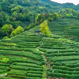 Walking in the tea garden, you can't help but stop and savor the tea. The occasional chirping of birds and fragrance of flowers make this green ocean even more vivid. Every sip of fresh tea reminds me of the purity of nature and makes me love life more.