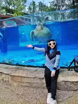 Entering the park at 5pm, it wasn't too late. The sea turtle at the main entrance was quite the showman, perfectly timing its flipper flaps for a photo op. 👋It seemed to know the visitors were there, swimming non-stop where people gathered.