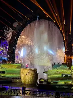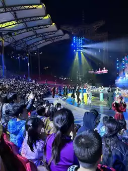 By 6pm, we thought we'd go watch "A Dream Back to Lingnan" to rest our feet, but we were deeply moved by the performance. The stage lighting was stunning, and the dancers were incredibly skilled and professional. The most pleasant surprise was the incorporation of intangible cultural heritage elements like Cantonese opera, "da tie hua" (iron flower hitting), and Lingnan martial arts. Millennia-old culture was revitalized on stage, filling the audience with a sense of pride.