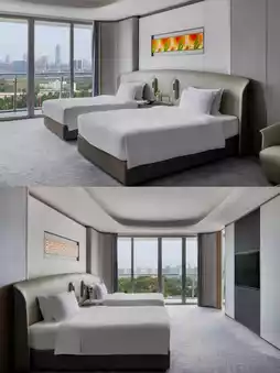 The hotel's rooms are decorated in a modern style and are equipped with all kinds of modern facilities. The intelligent control system is very convenient, and you can control various equipment in the room with just a touch. Moreover, the windows in the room are super large. Looking out, you can enjoy the surrounding natural beauty. During the day, it is a busy city scene, and at night it is a brightly lit night scene, which is super charming🌃.