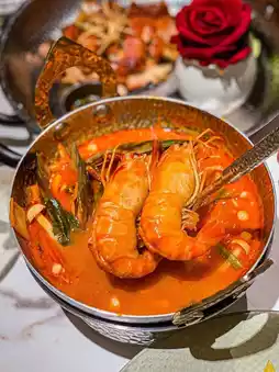 The giant river prawns are plump and juicy, and the white curry enhances the sweetness of the prawn meat to perfection. Tender and springy, the prawn heads are filled with flavorful roe. The white curry and coconut milk are incredibly fragrant, perfect for mixing with rice. It's a truly satisfying dish.