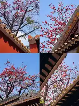 1. The photos of the kapok flowers at the Peasant Movement Training Institute were taken on the morning of March 11th. The recent blue skies and sunshine are truly rare. The red walls and light and shadow of the Peasant Movement Training Institute are stunning. Seize the opportunity to take photos while the sun is shining, or you'll have to wait another year.