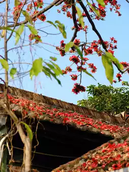 After the Waking of Insects, the grass and trees begin to grow, and there is hope for spring in the mountains. The annual kapok flowers bloom on the branches in Guangzhou, dyeing the sky red. 🌺The tree trunk is tall and straight, and the flowers fall with a loud sound, without withering or fading...