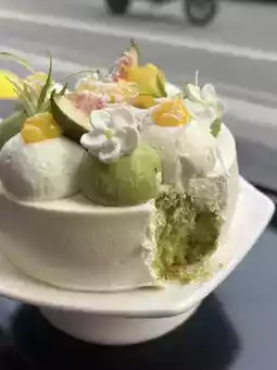 The cake has a moist texture and a sweet flavor, making it the perfect pairing with a matcha coconut latte. 😋 No matter what kind of cake you choose, you'll be satisfied with the quality!