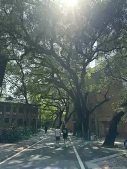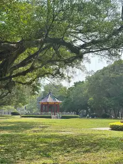 The campus is lush with greenery, towering banyan trees, and lawns like carpets. Historical buildings such as Huai Shi Hall and Xing Pavilion bear witness to the school's significant changes over time.