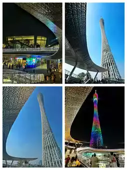 📸 Don't just keep taking photos from the angle in picture 2. Just walk a few steps south of Canton Tower Plaza for a surprise, like in picture 3.