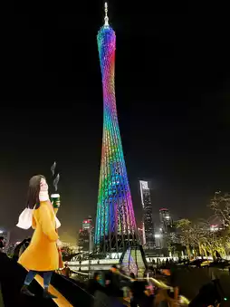 📍 You can take great photos on a waterfront platform upstairs in Canton Tower Plaza. If you stand on the steps in picture 4 at night, you can take amazing photos.